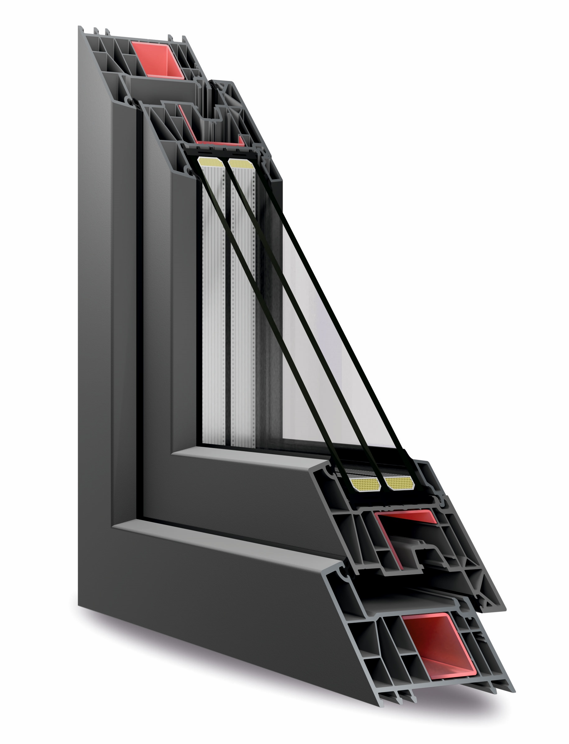 Ezekben nyílászárókban a profilok megnövelt falvastagsága miatt, a hegesztett profilsarkok szilárdsága a legerősebbek közé tartozik. Nyílászáróink szilárdságát tovább fokoztuk a V-Perfect technológia alkalkalmázával, ami erősebb sarokhegesztést jelent. A masszív zártszelvénnyel merevített termékeink garantálják a kimagasló stabilitást. Az egyre inkább elterjedő nagy felületű háromrétegű üvegek teherhordásánál kulcsfontosságú a megfelelően masszív szerkezet.